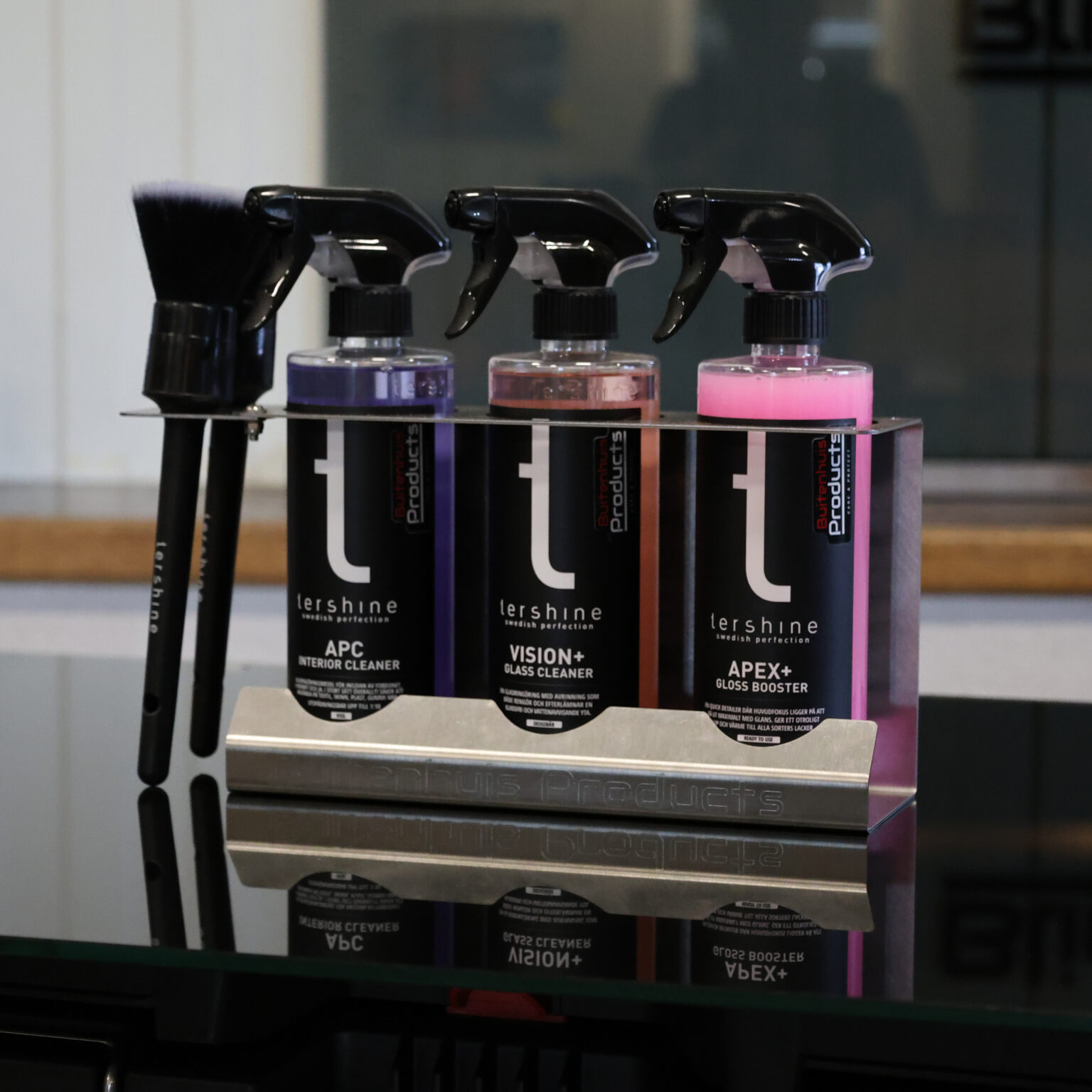 Deze uitvoering wordt geleverd als gevuld pakket met drie krachtige reinigingsproducten: interieurreiniger, glasreiniger met coating en een glansbooster voor lak of kunststof. Daarnaast ontvang je twee zachte kwasten. Alles wat je nodig hebt voor snel en efficiënt onderhoud van je voertuig.