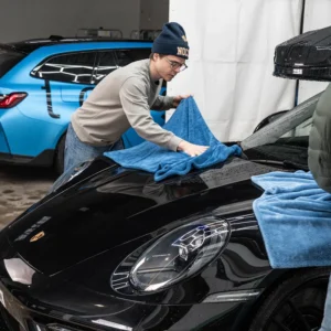 - Gebruik een washandschoen of microvezeldoek en maak rechte bewegingen over de lak van het voertuig.